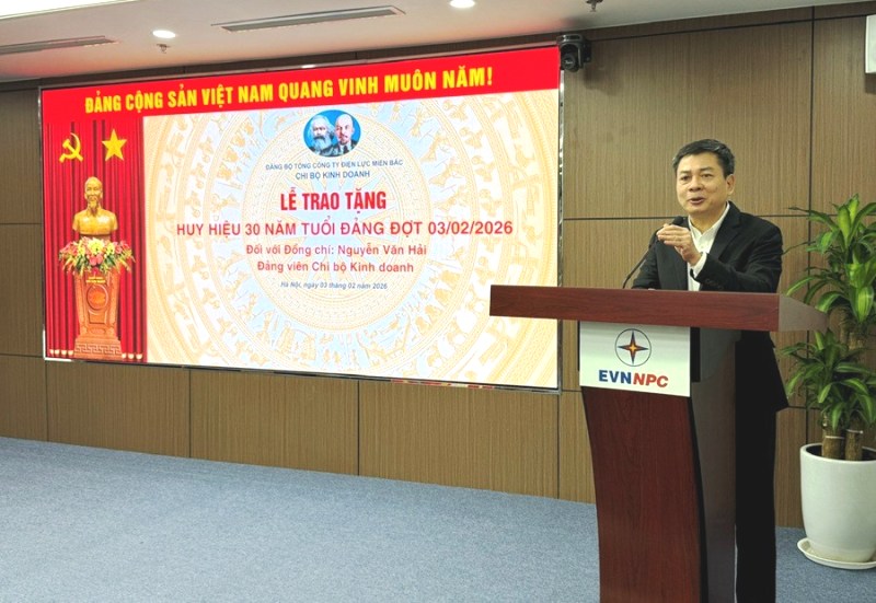 Tại Lễ trao tặng Huy hiệu 30 năm tuổi Đảng tổ chức ngày 03/02/2026, đồng chí Nguyễn Văn Hải – đảng viên Chi bộ Kinh doanh EVNNPC đã bày tỏ niềm xúc động và tự hào khi được đón nhận phần thưởng cao quý của Đảng đúng dịp kỷ niệm 96 năm Ngày thành lập Đảng Cộng sản Việt Nam.