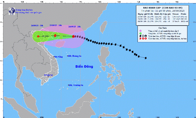 Dự báo hướng đi của bão số 9