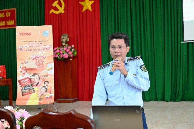 Ông Nguyễn Vũ Khanh chia sẻ về an toàn và vệ sinh thực phẩm đúng cách (Ảnh: Hội Liên hiệp Phụ nữ tỉnh Đồng Nai cung cấp)
