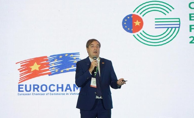 Chủ tịch EuroCham Việt Nam Bruno Jaspaert nhấn mạnh, chuyển đổi xanh không còn là lựa chọn, mà là điều kiện tồn tại của tăng trưởng