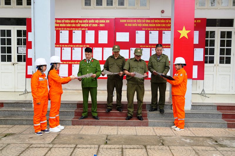 Nhân viên Đội QLĐLKV Bằng Giang phối hợp với lực lượng chức năng tuyên truyền công tác đảm bảo cấp điện an toàn, ổn định phục vụ bầu cử đại biểu Quốc hội khóa XVI và đại biểu HĐND các cấp nhiệm kỳ 2026 - 2031