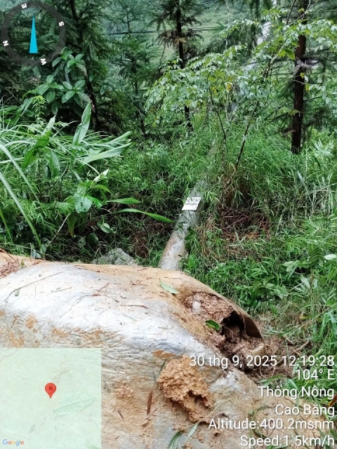 Cột điện bị đá lở gây nghiêng đổ tại xã Cần Yên và xã Phục Hòa, tỉnh Cao Bằng