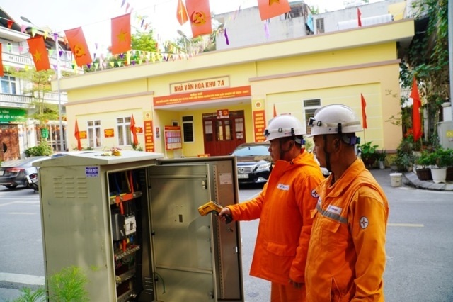 Nhân viên Đội QLĐLKV Hạ Long kiểm tra đảm bảo cấp điện tại các điểm bầu cử