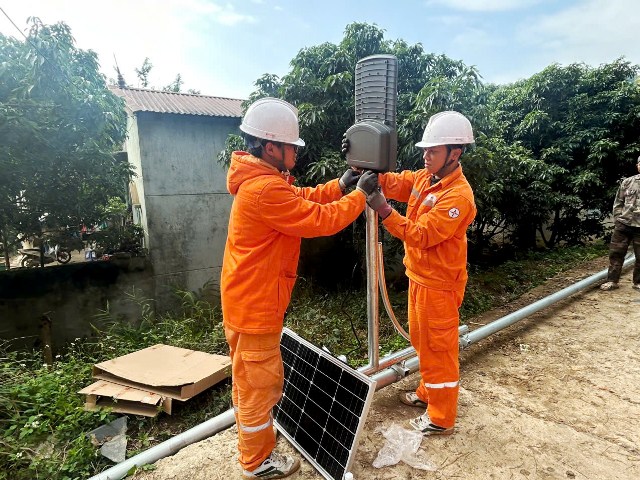 Công nhân Công ty Điện lực Sơn La triển khai Chương trình thắp sáng làng quê tại các xã trên địa bàn tỉnh Sơn La