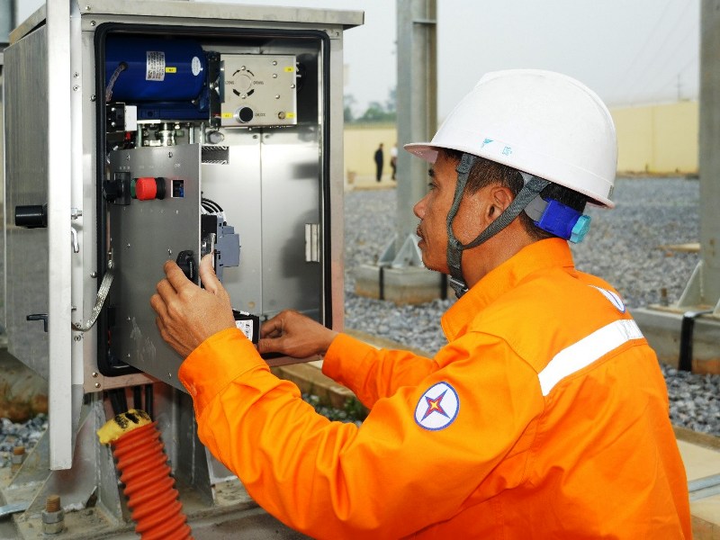 Công nhân Xí nghiệp Cao thế Thanh Hóa (CTĐL Thanh Hóa) kiểm tra các thiết bị của TBA 110kV Hậu Lộc 2 trước khi đưa vào vận hành