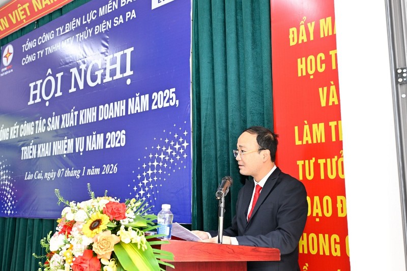 Phát biểu chỉ đạo tại Hội nghị, thay mặt lãnh đạo Tổng công ty, ông Lê Đình Lượng – Thành viên HĐTV đã dành những lời khen ngợi nồng nhiệt nhất cho tập thể CBCNV-NLĐ NPCHSP. Trong bài phát biểu đầy tâm huyết, ông Lê Đình Lượng nhấn mạnh: "Tôi thực sự ấn tượng và xúc động trước những gì mà tập thể Công ty đã làm được trong năm 2025 vừa qua. Giữa muôn trùng khó khăn của thiên tai bão lũ, của sạt lở chia cắt và những áp lực căng thẳng từ lưới điện, các đồng chí vẫn giữ vững tay chèo, đưa con thuyền NPCHSP cập bến an toàn với hiệu suất lợi nhuận và sản lượng vượt kế hoạch đầy thuyết phục. Điều đó không chỉ thể hiện năng lực quản trị doanh nghiệp xuất sắc của Ban Giám đốc mà còn minh chứng cho tinh thần “kỷ luật - tận tâm - trách nhiệm” của mỗi người lao động nơi đây. Các đồng chí đã không quản ngại gian khổ, băng rừng lội suối để sản xuất điện an toàn, ổn định; các đồng chí đã biến khó khăn thành động lực để đổi mới sáng tạo, áp dụng chuyển đổi số vào thực tiễn sản xuất. Sự đóng góp của Công ty vào thành tích chung của EVNNPC là rất đáng trân trọng và biểu dương."