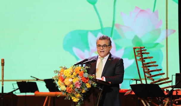 Thay mặt bạn bè quốc tế, Đại sứ Nhà nước Palestine Saadi Salama, Trưởng Đoàn ngoại giao tại Việt Nam phát biểu tại chương trình