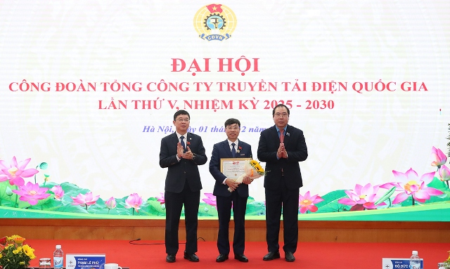 Lãnh đạo Công đoàn Điện lực Việt Nam và lãnh đạo Đảng ủy EVNNPT tặng hoa chúc mừng Ban Chấp hành Công đoàn EVNNPT khóa V