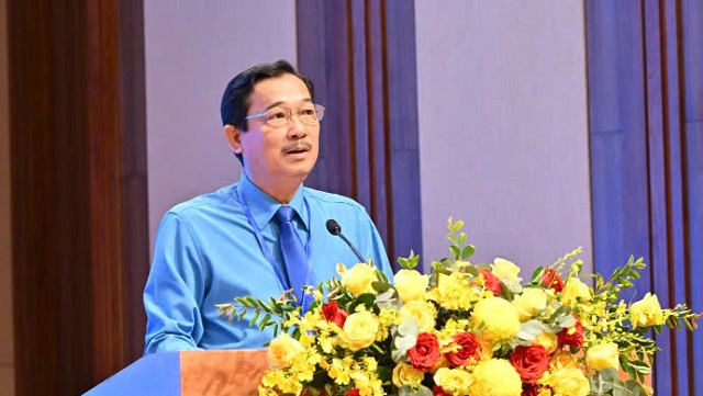 Tại Đại hội, đồng chí Hồ Kỳ Quốc Hùng, Chủ tịch Công đoàn TCT khóa VI, trình bày Báo cáo tổng kết nhiệm kỳ 2023–2025.