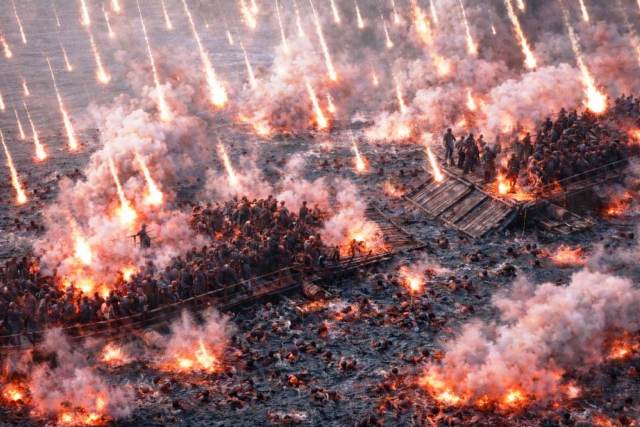 Đại chiến hai bên bờ sông Hồng, giặc nhảy xuống nước hòng dập tắt lửa nhưng lửa Đại Việt là từ chất lỏng chứa phốt pho cháy được trên mặt nước hút hết oxy khiến hàng vạn tên giặc chết ngạt