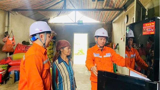 Nhân viên Điện lực hướng dẫn bà Trần Thị Nhình sử dụng thiết bị điện an toàn. Với người dân vùng cao, điện không chỉ là ánh sáng mà còn là niềm tin vào một cuộc sống đủ đầy hơn.