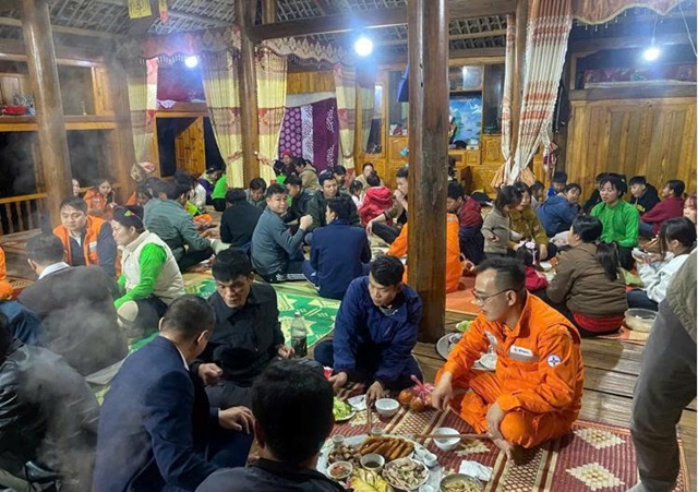 Bữa cơm mừng điện sáng bản tại nhà trưởng thôn Thâm Pất — nơi người dân coi nhân viên điện lực như người nhà, như những vị khách quý mang ánh sáng và niềm vui đến với bản làng