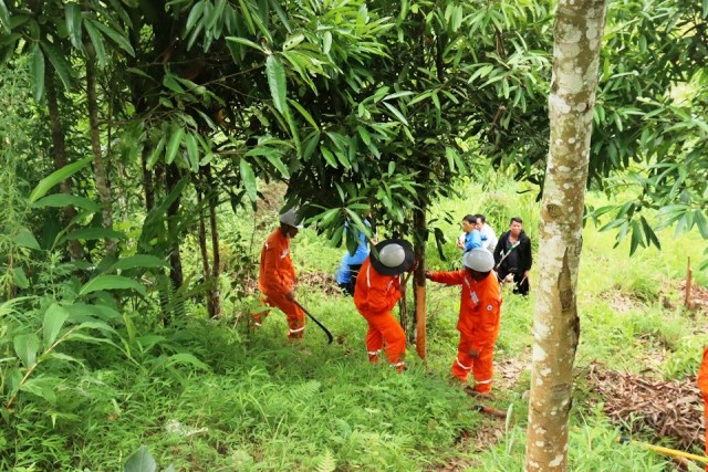 Hỗ trợ người dân thu hoạch bóc vỏ quế để đảm bảo hành lang lưới điện an toàn
