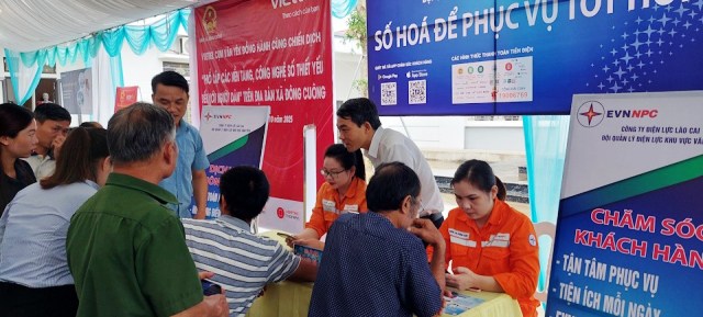 Sau phần lễ, các đại biểu và người dân đã tham quan, trải nghiệm các gian hàng chuyển đổi số đến từ nhiều đơn vị, doanh nghiệp trên địa bàn. Trong đó, Đội Quản lý Điện lực khu vực Văn Yên (PC Lào Cai) đã mang đến gian hàng “Điện lực số – Phục vụ khách hàng số”, với nhiều nội dung phong phú, thiết thực, thể hiện rõ tinh thần đổi mới, sáng tạo của ngành Điện trong tiến trình chuyển đổi số.