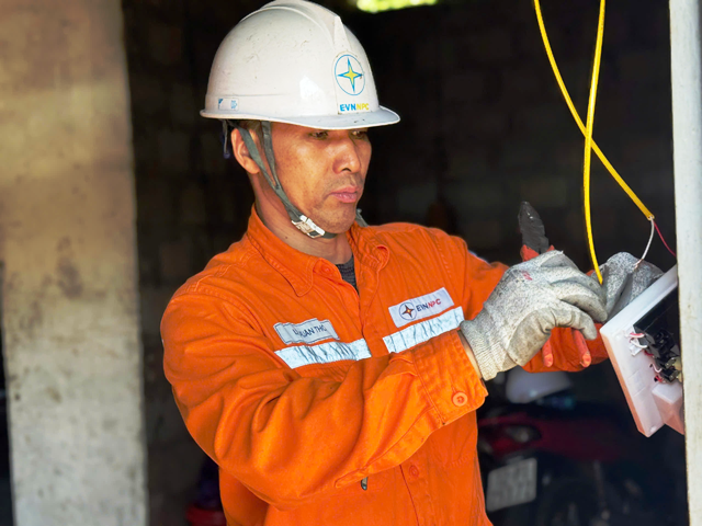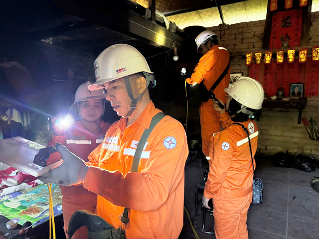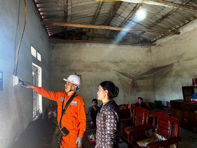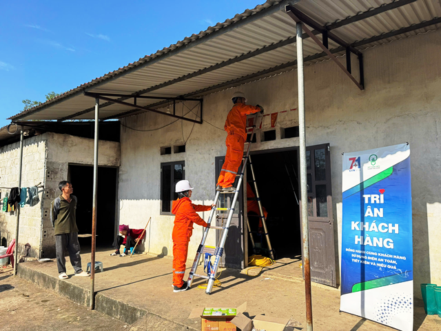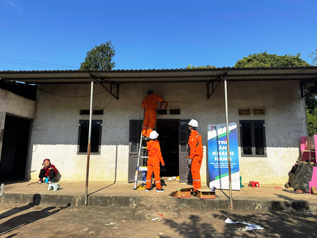 Công nhân tổ quản lý thực hiện chương trình “Thắp sáng niềm tin” tại gia đình khách hàng