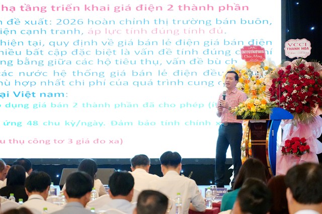 Một nội dung chuyên sâu cũng được trình bày tại hội nghị là mô hình giá điện hai thành phần do Phó Giáo sư, Tiến sĩ Bùi Xuân Hồi – Bí thư Đảng ủy, Hiệu trưởng Trường Cao đẳng Điện lực miền Bắc trực tiếp trao đổi, chia sẻ với các đại biểu.