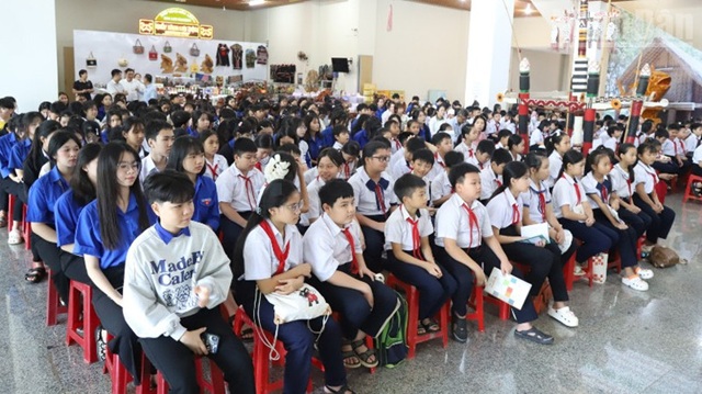 Đông đảo các em học sinh và đoàn viên, thanh niên ở phường Buôn Ma Thuột tham dự khai mạc triển lãm.