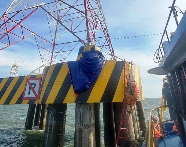 Việc di chuyển ra biển để tham gia dựng cột, kéo dây là một thách thức lớn, đặc biệt công tác vận chuyển vật tư, cộng cụ, dụng cụ thi công, di chuyển thiết bị phương tiện mất nhiều thời gian, sức lực. Do điều kiện thi công trên biển nên phải đi theo thủy triều, buổi sáng, các kỹ sư, công nhân thức dậy từ 4h30 để chuẩn bị xuống tàu di chuyển ra vị trí, chiều tối hơn 19h mới vào bờ. Do vị trí trụ trên biển, không có xà lan hay tàu lớn nên không thể ngủ lại qua đêm. Tuy nhiên, với kinh nghiệm sẵn có và tinh thần quyết tâm cao, đơn vị quyết tâm hoàn thành tốt nhiệm vụ.