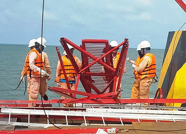 Chuẩn bị lắp cánh xà chống sét tại vị trí trên biển