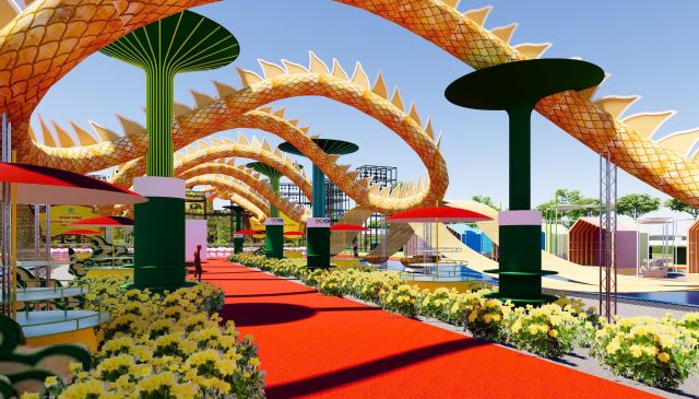 - Không gian trưng bày hoa, cây cảnh, sinh vật cảnh đặc trưng ngày Tết.
