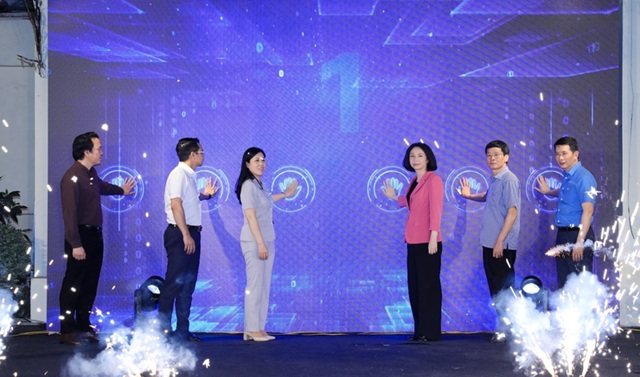 Phó Chủ tịch UBND thành phố Hà Nội Vũ Thu Hà cùng các đại biểu thực hiện nghi thức ra mắt Cổng thông tin an toàn thực phẩm thành phố Hà Nội. Ảnh: Lê Hải