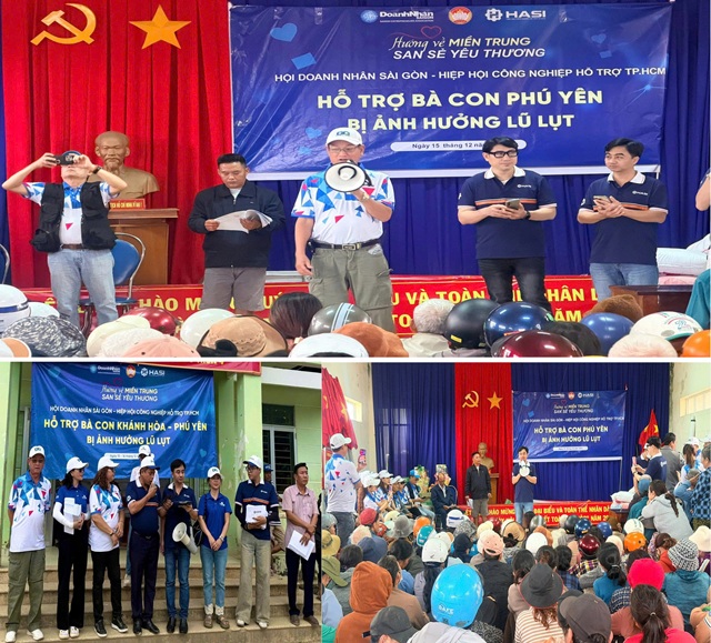 Vừa qua, trong 2 ngày 15, 16/12, 25 thành viên thuộc đoàn thiện nguyện của Hội Doanh nhân Sài Gòn và Hiệp hội Công nghiệp Hỗ trợ TP.HCM (HASI) đã vượt chặng đường hơn 1,5 nghìn cây số để trao quà cho người dân chịu thiệt hại nặng nề do mưa lũ tại tỉnh Phú Yên (cũ) và tỉnh Khánh Hòa.