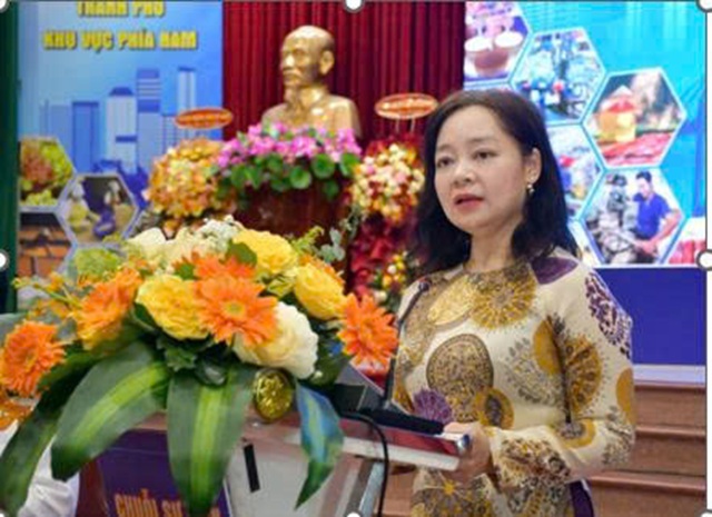 Bà Nguyễn Thị Lâm Giang, Cục trưởng Cục Đổi mới sáng tạo, Chuyển đổi xanh và Khuyến công phát biểu khai mạc Hội nghị