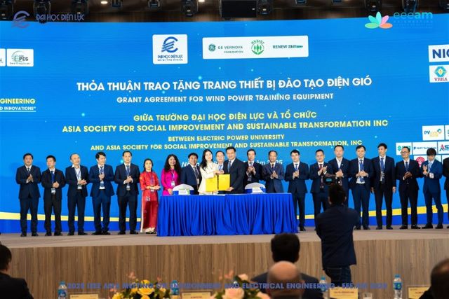 Thỏa thuận trao tặng trang thiết bị đào tạo điện gió giữa Trường Đại học Điện lực và tổ chức Asia Society for Social Improvement and Sustainable Transformation Inc (ASSIST)