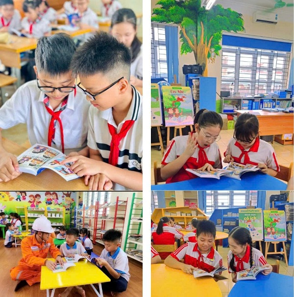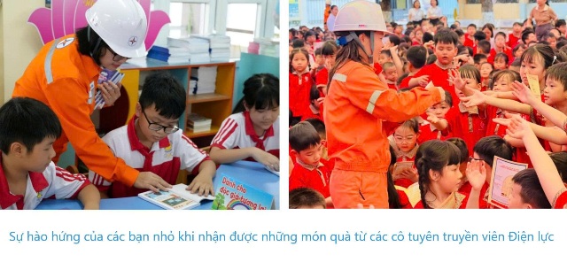 Nhân viên Điện lực với vai trò tuyên truyền viên lan tỏa cuốn sách đến các bạn nhỏ