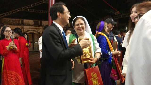Ông Cao Văn Tâm - Phó Chủ tịch UBND xã Sơn Đồng tiếp đoàn Hội đồng Thủ công thế giới. Theo ông Cao Văn Tâm: Việc được công nhận trở thành thành viên mạng lưới các làng nghề thủ công sáng tạo thế giới năm 2025 vừa là vinh dự vừa là trách nhiệm trong việc bảo tồn, phát huy và phát triển nghề thủ công mỹ nghệ sơn son thếp vàng thếp bạc Sơn Đồng