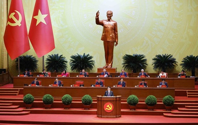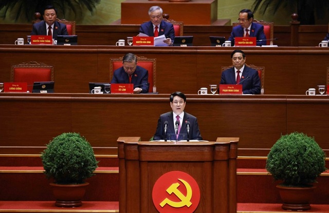 Tổng Bí thư Tô Lâm trình bày Báo cáo của Ban Chấp hành Trung ương Đảng khóa XIII về các văn kiện trình Đại hội XIV của Đảng - Ảnh: TTXVN