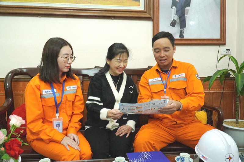 Công nhân ngành Điện Bắc Ninh tuyên truyền, hướng dẫn khách hàng sử dụng điện an toàn, tiết kiệm