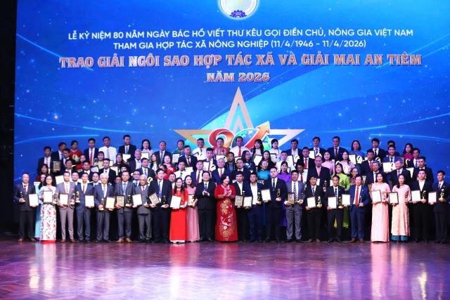 50 HTX được vinh danh tại giải thưởng Ngôi sao HTX năm 2026 và 50 sản phẩm được giải Mai An Tiêm năm 2026 do Liên minh HTX Việt Nam trao tặng