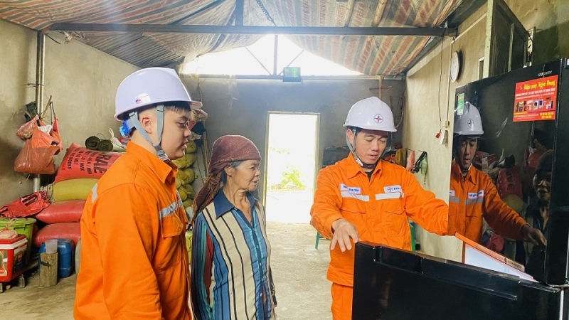 Nhân viên Đội Quản lý Điện lực khu vực Bảo Yên hướng dẫn cụ Phùng Thị Nhình sử dụng thiết bị điện an toàn, tiết kiệm