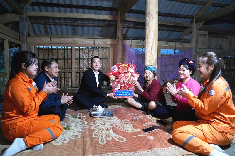 Tình nồng ấm, sắt son giữa người thợ điện và đồng bào vùng cao được khắc họa rõ nét hơn bao giờ hết trong cái lạnh của chiều cuối năm. Thấu hiểu sự hy sinh thầm lặng và để động viên tinh thần cho các CBCNV tại Đội Quản lý Điện lực khu vực Lục Yên sẵn sàng trực trong những ngày Tết, khi nhiều người phải xa gia đình, đồng thời để chung vui, xây dựng tình cảm gắn kết giữa cán bộ ngành Điện địa phương với bà con nhân dân tại thôn Thâm Pất khi có nguồn điện ổn định từ lưới điện Quốc gia, Đội đã cùng với bà con nhân dân trong thôn tổ chức buổi liên hoan nhỏ. Tiếng nói cười nói giòn tan vang vọng cả núi rừng đại ngàn, xóa nhòa đi mọi khoảng cách để chung niềm vui bất tận với bà con nhân dân. Trong bầu không khí thân tình đón xuân cùng bà con nhân dân, các cán bộ công nhân thuộc Đội Quản lý Điện lực còn kết hợp lồng ghép với việc tuyên truyền bảo vệ hành lang an toàn lưới điện, sử dụng điện an toàn và tiết kiệm... Hình ảnh đẹp nhất đọng lại trong ống kính của tôi chiều hôm ấy là nụ cười bừng sáng của đám trẻ thơ khi xúm xít quanh cô thợ điện. Trên tay các em là những chiếc kẹo ngọt ngào mang hương vị Tết, cùng những quyển vở tinh tươm in hình chú thợ điện đáng yêu được Tổng công ty Điện lực miền Bắc dành tặng. Màu áo cam hòa quyện với sắc xanh, sắc chàm của trang phục truyền thống đã vẽ nên bức tranh mùa xuân tuyệt mỹ, đầy ắp tình người.