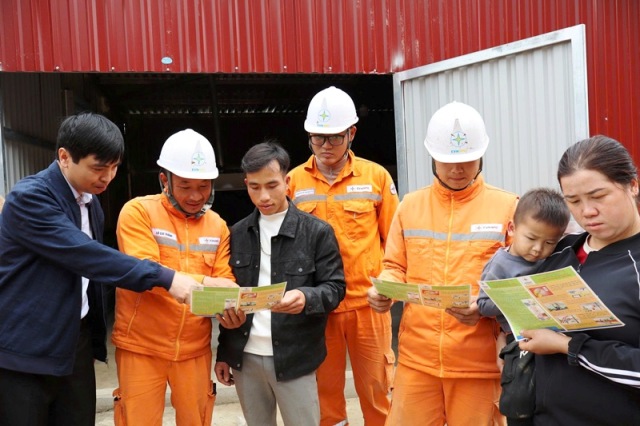 Công nhân ngành Điện tuyên truyền sử dụng điện an toàn trong dân