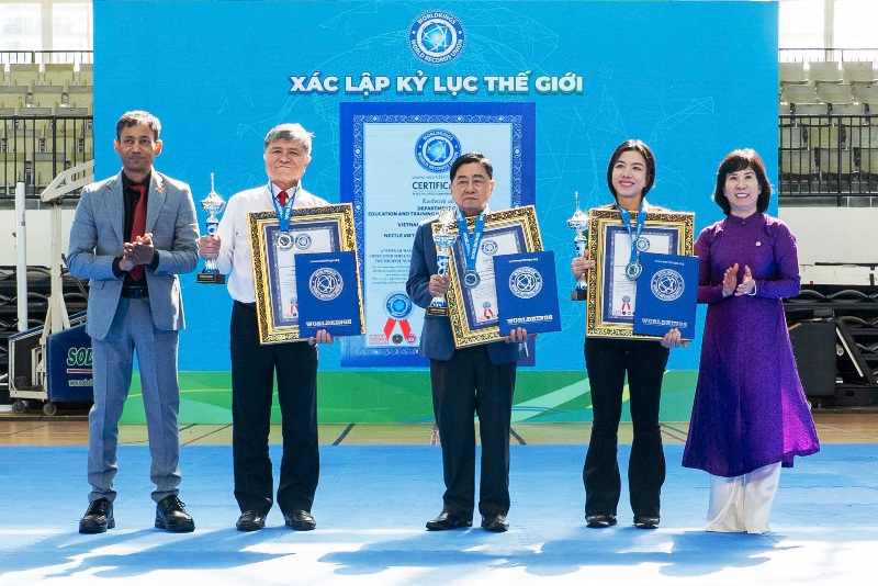 Cũng trong khuôn khổ sự kiện này, đại diện đơn vị xác lập kỷ lục Việt Nam (VietKings) và đơn vị xác lập kỷ lục thế giới (WorldKings) đã trao chứng nhận Kỷ lục Đồng diễn Võ nhạc Vovinam tại nhiều trường với số lượng học sinh tham gia đông nhất Việt Nam và Thế giới cho các đơn vị tham gia, gồm: Sở Giáo dục và Đào tạo TP HCM, Liên đoàn Vovinam Việt Nam và Công ty TNHH Nestlé Việt Nam.