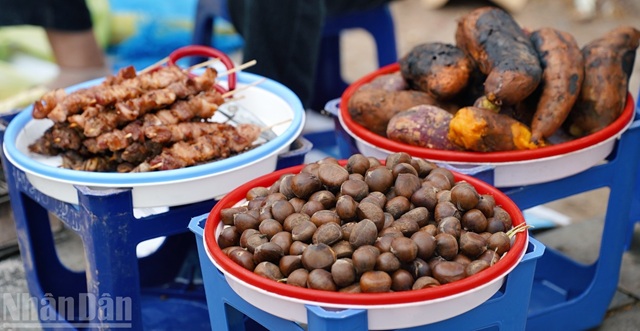 Những hàng quán bán ngô nướng, khoai nướng, trà nóng... bắt đầu đỏ lửa trở lại, thu hút khách dừng chân sưởi ấm trong buổi sáng đầu đông.