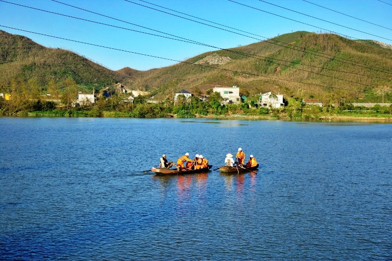 Tôi thấy rõ từng thớ cơ trên lưng hai ông căng lên, mồ hôi ướt đẫm tấm áo bạc màu. Con thuyền không lướt đi nhẹ nhàng như những chuyến đò ngang thường nhật, mà nó đi một cách chậm chạp, nặng nề, như thể đang kéo theo cả gánh nặng của hàng nghìn con người đang chìm trong bóng tối. Con thuyền ấy, người lái đò ấy chính là hình ảnh thu nhỏ của một Hà Tĩnh kiên cường, đang căng mình ra để vượt qua bão tố. Sáu người thợ điện ngồi trên thuyền, tay bám chắc vào mạn, ánh mắt không rời khỏi sợi dây. Họ là những đối trọng sống, giữ cho con thuyền thăng bằng trước sức níu của dòng nước và sức nặng của sợi dây.