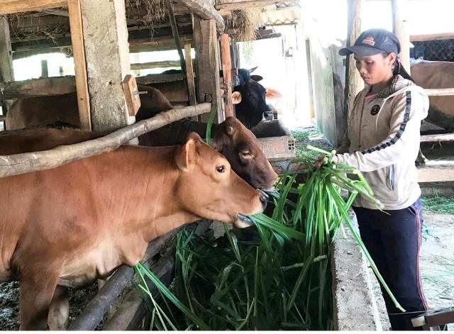 Những ngày đầu tháng 4/2026, chúng tôi tới thăm gia đình ông Đinh Văn Quý, người dân tộc Ca Dong ở làng Sơn Bua, xã Sơn Tây. Ông cho biết, nguồn vốn chính sách đã đồng hành cùng gia đình hơn chục năm qua. Từ 30 triệu đồng ban đầu dùng để đầu tư trồng 3ha keo, khi cây keo phát triển, không cần phải tốn nhiều công chăm sóc, ông vay thêm 20 triệu đồng để mua 2 con bò về nuôi. Cuối năm 2024, gia đình ông đã thoát nghèo. Đầu năm 2025, ông vay thêm 100 triệu đồng tiếp tục đầu tư chăn nuôi bò theo hướng hàng hóa. Hiện tại gia đình đang sở hữu 3ha keo cùng đàn bò 11 con. Ông Quý chia sẻ: “Tôi sẽ nhân giống đàn bò lên vì ở đây điều kiện chăn thả tốt, cỏ tự nhiên nhiều, không phải mất tiền mua thức ăn. Nuôi bò ít thì chỉ thoát nghèo, muốn làm giàu thì phải đầu tư nuôi nhiều, chăm sóc bài bản”.