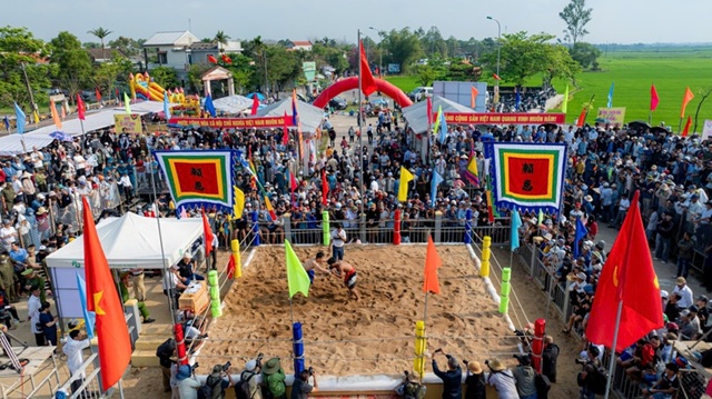 Cũng trong hôm nay, tại đình làng Lại Ân (làng Sình), phường Dương Nỗ, thành phố Huế, Hội vật truyền thống làng Sình diễn ra sôi nổi trong tiếng trống khai hội rộn rã.
