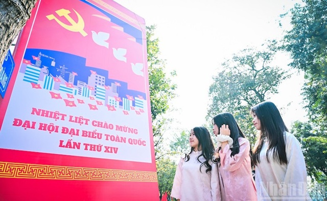 Người dân Thủ đô tin tưởng, kỳ vọng Đại hội lần thứ XIV của Đảng sẽ là dấu mốc mở ra kỷ nguyên mới, kỷ nguyên vươn mình của dân tộc. (Ảnh: Bảo Long)