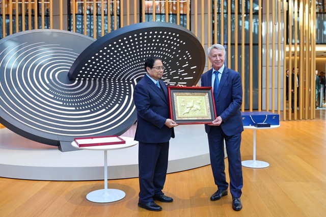 2 Thủ tướng Phạm Minh Chính đánh giá hoạt động của Tập đoàn phù hợp với định hướng, chiến lược lớn của Việt Nam, với mục tiêu tăng trưởng kinh tế từ 10% trở lên, đạt phát thải ròng bằng 0 vào năm 2050 - Ảnh: VGP/Nhật Bắc