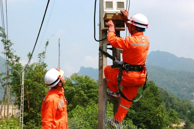Công nhân điện kiểm tra hệ thống đo đếm nhằm phát hiện, xử lý kịp thời sự cố, góp phần giảm tổn thất điện năng trên địa bàn vùng cao Lào Cai