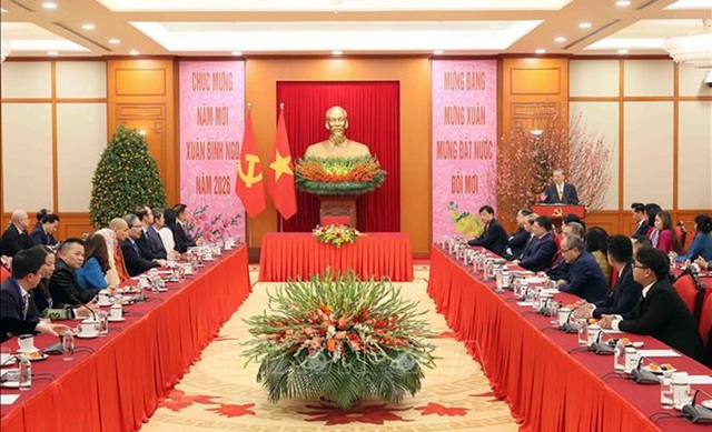 Tổng Bí thư nói, năm 2025 là năm có nhiều cơ hội nhưng cũng nhiều thử thách. Trong bối cảnh tình hình thế giới và khu vực có nhiều biến động phức tạp, với sự chung sức đồng lòng của toàn Đảng, toàn dân, toàn quân, trong đó có sự đóng góp của 6,5 triệu đồng bào ta ở nước ngoài, đất nước ta đã vững vàng vượt qua nhiều khó khăn, thử thách để đạt được nhiều kết quả quan trọng trên tất cả các lĩnh vực. Chúng ta tiếp tục giữ vững ổn định chính trị - xã hội; kinh tế duy trì đà tăng trưởng tích cực; quốc phòng, an ninh được giữ vững; đối ngoại hội nhập quốc tế cũng đạt được nhiều dấu ấn, góp phần nâng cao vị thế, uy tín và trách nhiệm của Việt Nam trên trường quốc tế.