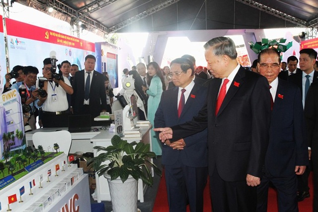 Trước khi vào Đại hội, Tổng Bí thư Tô Lâm; nguyên Tổng Bí thư Nông Đức Mạnh, Chủ tịch nước Lương Cường, Thủ tướng Chính phủ Phạm Minh Chính, Chủ tịch Quốc hội Trần Thanh Mẫn cùng các đồng chí lãnh đạo, nguyên lãnh đạo Đảng và Nhà nước đã tham quan Triển lãm Thành tựu Báo chí - Xuất bản và Triển lãm "Sản phẩm công nghệ chiến lược quốc gia tại TPHCM".