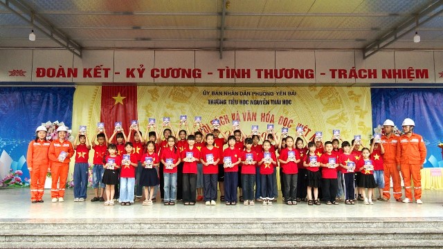 Dịp này, Điện lực Yên Bái đã trao tặng 100 cuốn sách tranh “Bí mật Quả cầu Tím” cho học sinh nhà trường. Đây là ấn phẩm do EVNNPC phát hành, hướng tới đối tượng học sinh tiểu học với nội dung sinh động, gần gũi và giàu tính giáo dục về tiết kiệm năng lượng.