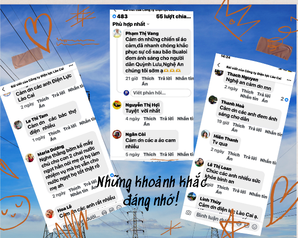Tinh thần ấy cũng lan tỏa đến người dân Nghệ An. Trên mạng xã hội, hàng trăm bình luận chan chứa yêu thương: “Cảm ơn những chiến sĩ áo cam, đã nhanh chóng khắc phục sự cố sau bão, đem ánh sáng cho người dân Quỳnh Lưu sớm ạ.”
