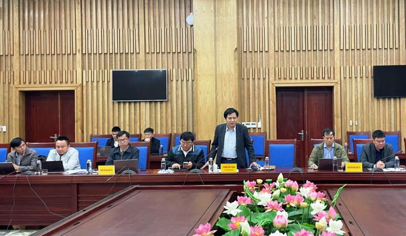Phó Tổng giám đốc EVNNPT Trương Hữu Thành (nay là Quyền Tổng giám đốc EVNNPT) nêu các kiến nghị tại buổi làm việc với UBND tỉnh Nghệ An để tháo gỡ vướng mắc các dự án truyền tải điện trên địa bàn tỉnh