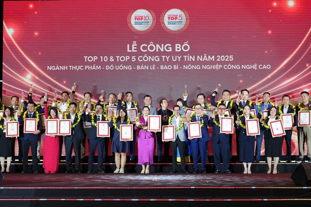 Đại diện các doanh nghiệp nhận danh hiệu Top 10 & Top 5 công ty uy tín 2025